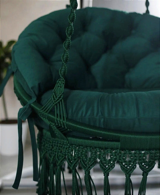 Dark Green Macrame Swing Chair For Adults 30 inches