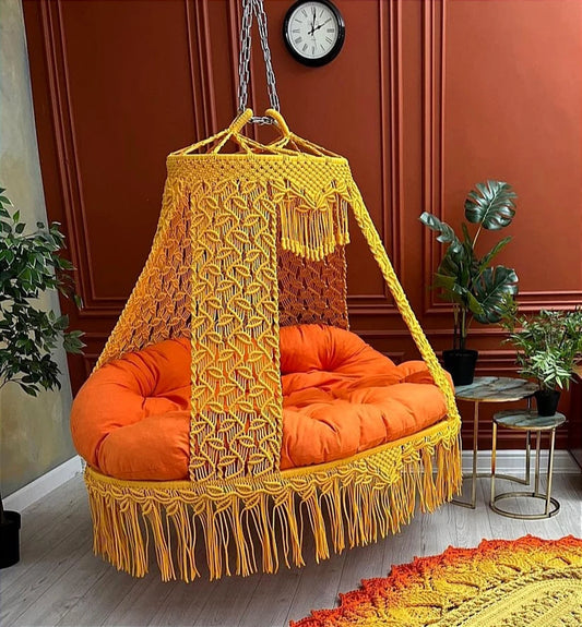 Yellow Macrame Sofa Swing With Mattress And Cushions