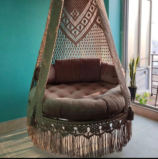 Brown Macrame Sofa Swing With Mattress And Cushions