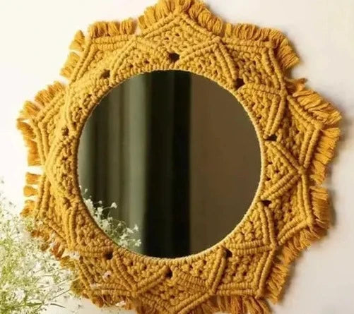 Yellow Macrame Wall Hanging Dream Catcher Mirror